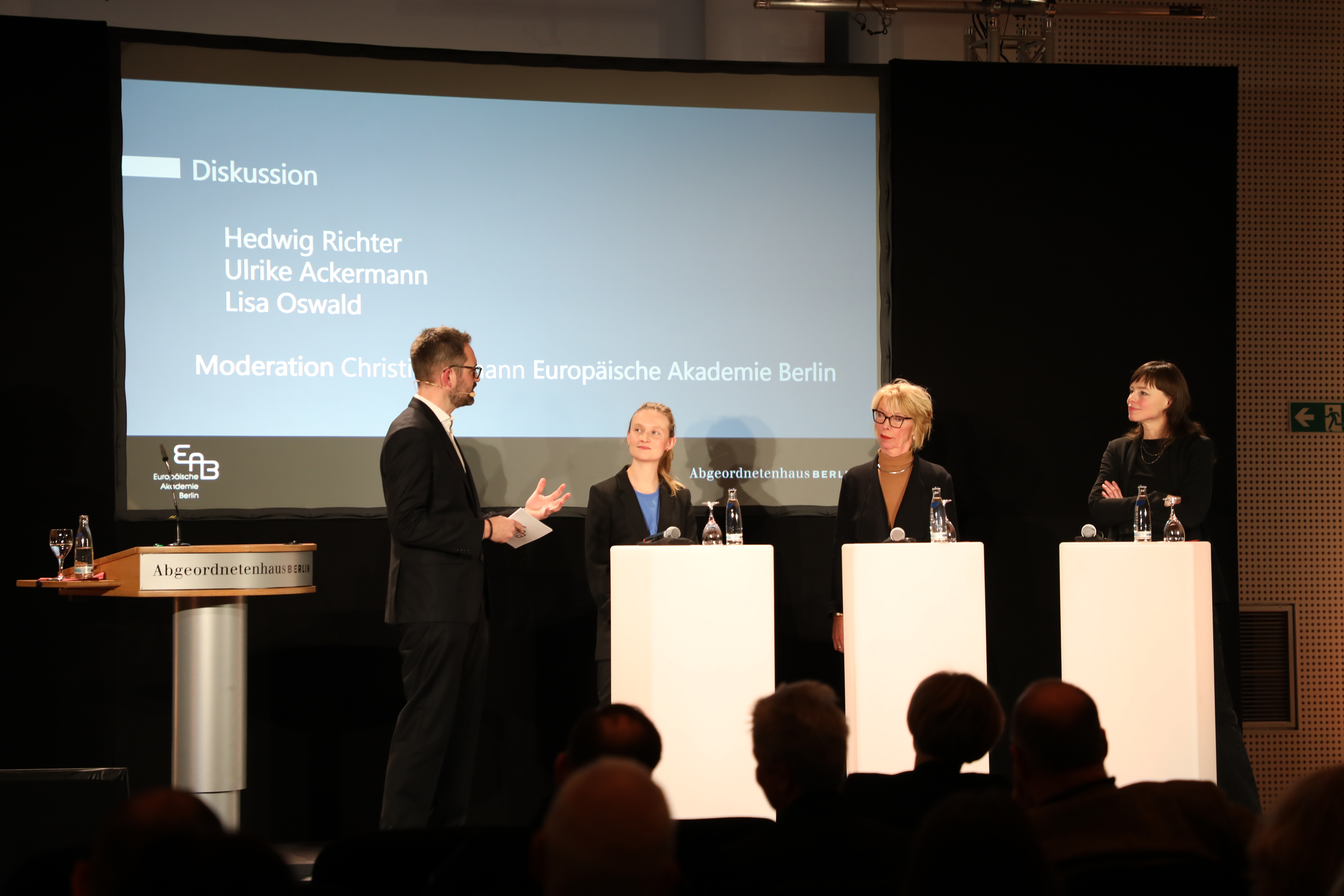 Die EAB lädt ein: Begrüßung durch die Präsidentin des Abgeordnetenhauses von Berlin, Cornelia Seibeld, mit einer Keynote von Prof. Dr. Jessica Gienow-Hecht, die den Abend auch inhaltlich rahmt, einem Panel mit Florian Fangmann, Leiter des Centre Français de Berlin, Eva Yakubovska, Mitgründerin von Vitsche, und weiteren Gästen – moderiert von Carlotta During (EAB).